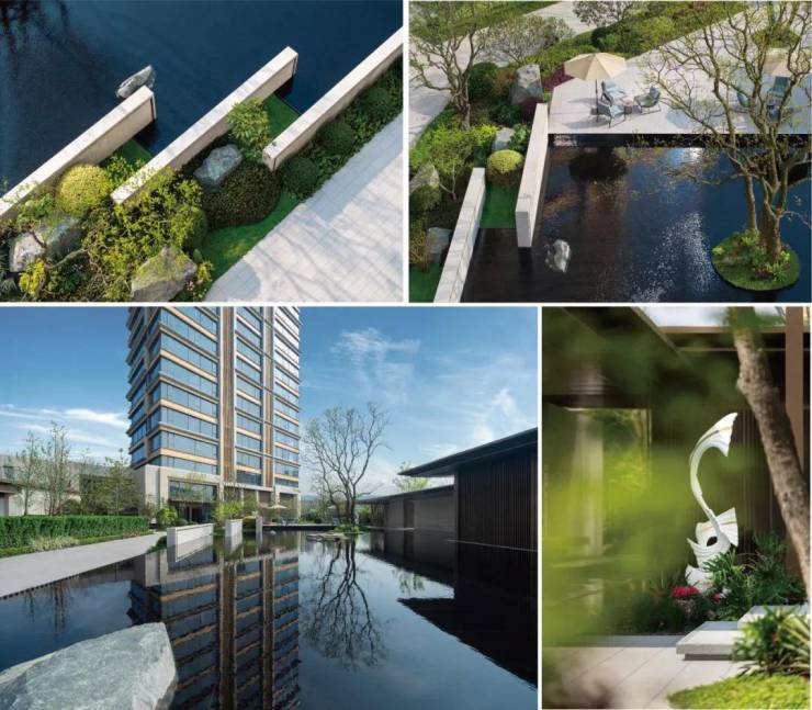 游览御临云峰的园区,仿佛走进一幅流动的画卷。水浪纹艺术小品与叠水台阶相映成趣,营造出贵隐江河汇的宁静与从容。