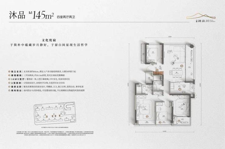 建面约145㎡的文化侘寂风,这种风格是兴耀在杭州住宅的首创。四室两厅两卫户型,更是改善家庭的心头好。