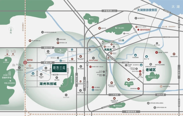 咫尺凤栖大厦(在建)、太湖首座、智创湾综合体(在建)、浙江菲曼酒店(在建)等商务配套,未来城市地标性建筑环伺,区域价值凸显。