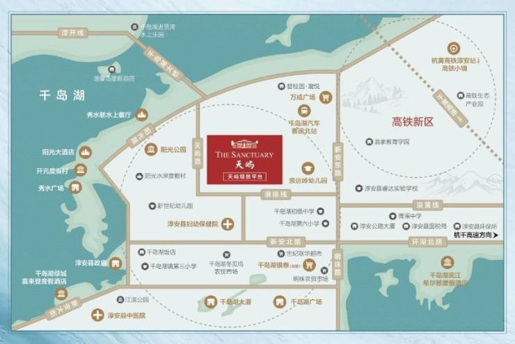 项目地处千岛湖老城区核芯,毗邻高铁新区,一脚油门畅享千岛湖醇熟城市配套