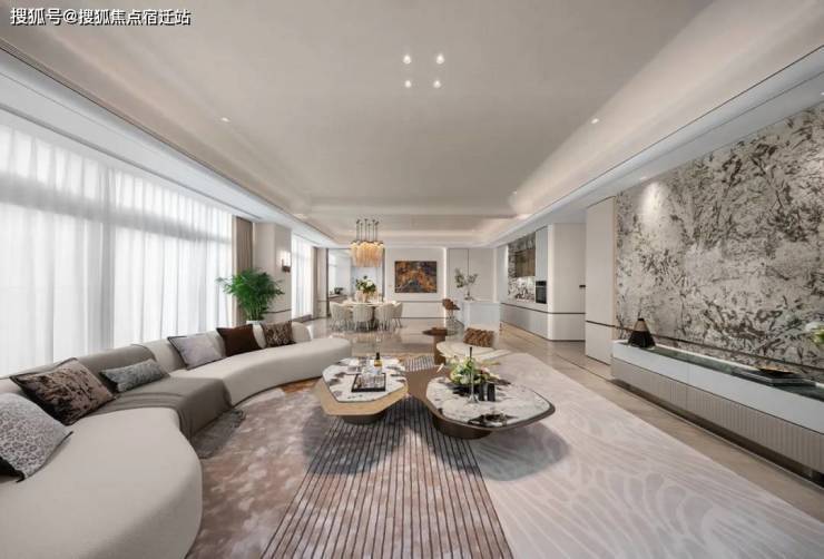 410㎡湾潮户型由WSD上海世尊团队执笔,以独一无二的“摩登东方”设计语言表达出一种符合当代审美的独有高级感。