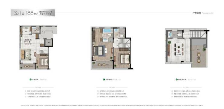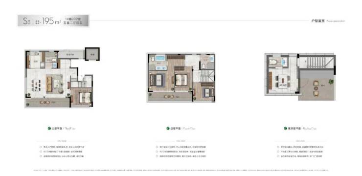上叠主力户型约188-195㎡,户型窗墙比超60%,星空双露台,明朗阔绰;可配地下空间,生活收放自如。