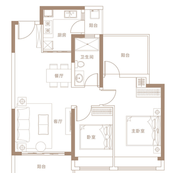 户型:4期E户型85㎡ 2+1房2厅1卫