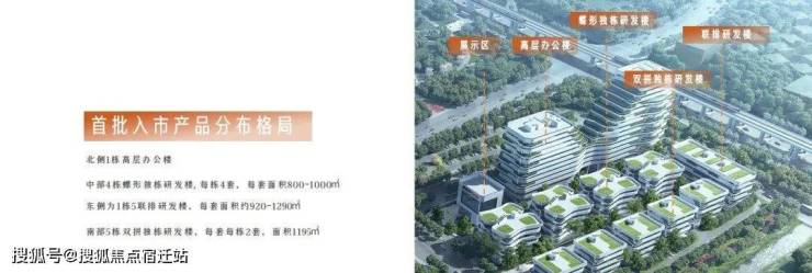 园区北部为2栋高层研发楼和1栋招商中心,中部为4栋蝶形类独栋研发楼,每栋分4套,每套建面约800-1000㎡;南部为5栋双拼独栋研发楼,每栋分2套,每套建面约1195㎡;东侧为1栋5联排研发楼,每套建面约920-1290㎡。多层建筑之间栋距较大且私密性较强,可满足不同企业的办公需求。