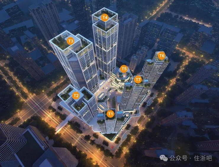 座落于杭州钱江世纪城奥体核心,繁华与江景相辉映,是一座近50万㎡超级综合体。项目包括200米高摩天商务双塔(T3、T4)、互联网总部大楼(T5)、Service无界空间(T1、T6、T7)、国际潮流Mall&街区。