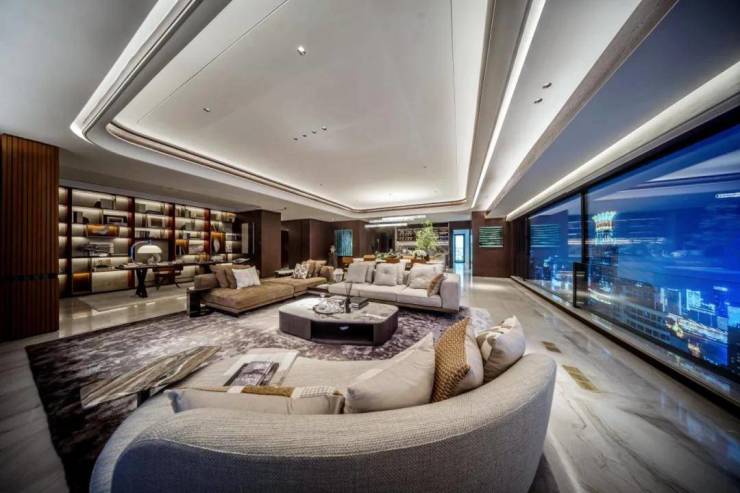 (二)顶配硬件重构奢居标准 | 维度 | 配置亮点 | 对标优势 | |------------|---------------------------|------------------------| | 层高 | 约3.45米墅级空间 | 超越市场标配0.15米 | | 装标 | 嘉格纳厨电+劳芬卫浴 | 顶奢品牌全系定制 | | 科技 | 华为智能家居+霍尼韦尔五恒 | 智慧人居闭环 | | 用材 | 玻利维亚蓝奢石地面 | 单方成本超普通大理石3倍|