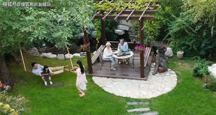 与左右邻里在庭院中围炉夜话、把酒言欢