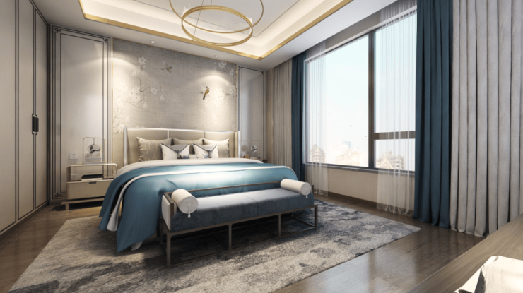 该户型二楼南向卧室有多面采光,这在上海极为少见。超长露台连接起两个卧室,如果家里有两个孩子,各自一个卧室,共通露台供其玩耍,别提有多开心。