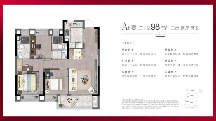 建面约98㎡户型