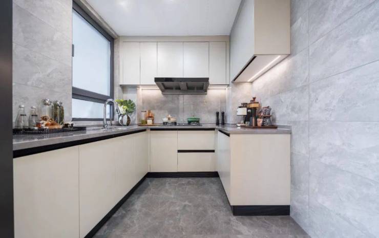 厨房尺度也进行了升级,如此宽敞的U型厨房,三五好友聚会时,即便两个人同时煮饭炒菜也会显得非常从容。