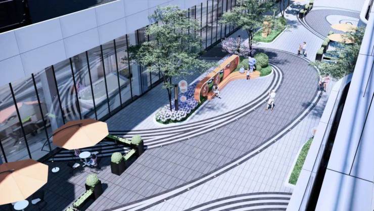 4号楼5层以上是酒店或写字楼,1-4层将打造成【休闲生活舱】,规划1拖2的精品茶咖、艺术烘焙、轻食吧等,形成"轻办公×慢生活"的潮奢生活聚集地。商业步行街整体将打造成为【潮奢街区】,规划网红品牌集合、创意茶饮、轻奢花艺、潮玩品牌等,形成集休闲、娱乐、时尚、艺术于一体的综合性商业步行街。