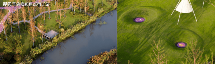 ①公园成为家的延伸:下楼即是约12000㎡运动公园(代建),这不是遥远的市政规划,而是与社区同步呈现的“森活绿肺”,滨水步道、篮球场、网球场、亲水平台与火山蹦床等设施错落其间,将运动、休闲、社交、自然健康生活方式融入日常每一天。