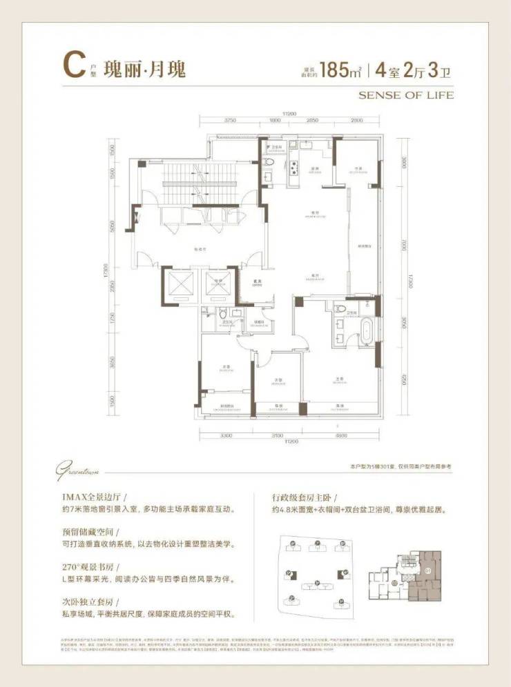 建面约185方户型,高品质的寰景奢宅: