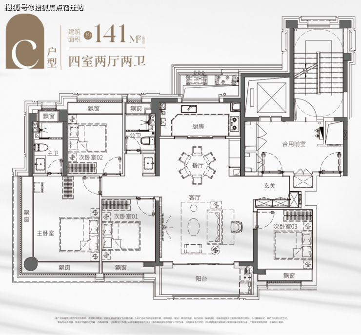 全屋足足四个飘窗设计,带来更多的采光和更好的通风,让你无需羡慕老洋房的采光。