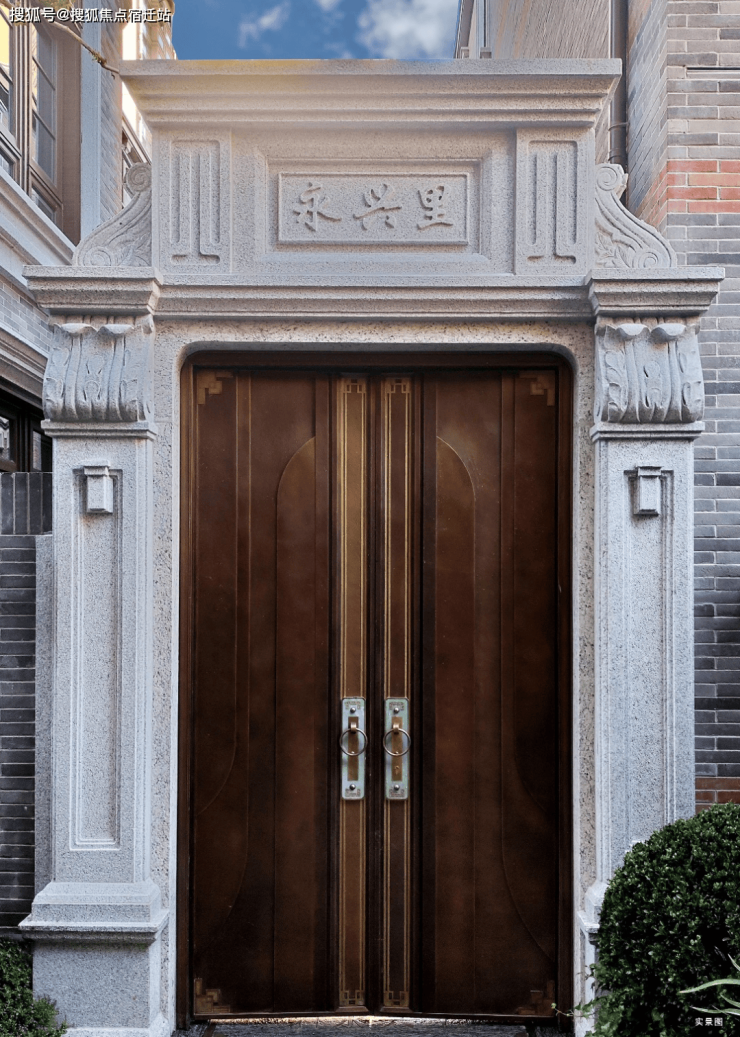 一进门厅礼序:入口保留过街楼形制,镌刻永兴里定制logo,
