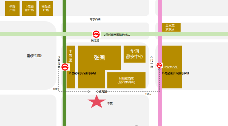 该项目位于上海市静安区威海路567号,正北面紧邻百年张园,东北方向为阿丽拉酒店(原四季酒店)及190米高的华润静安中心(在建)、兴业太古汇,西北方向为海派购物街区丰盛里,附近商业繁盛、配套齐全。