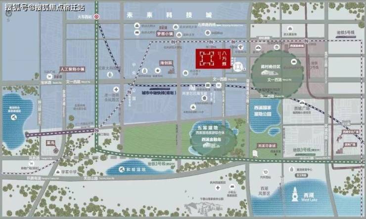项目是叫西溪八方城,所处区域是杭州未来科技城。未来科技城是全国四个未来科技城,北京、天津、武汉、杭州,杭州未来科技城是发展最好的一个,有美国硅谷的势头。八方城位于未来科技城东门户的位置,也是未来科技城最早开始发展的区域,现在周边已经非常成熟了。