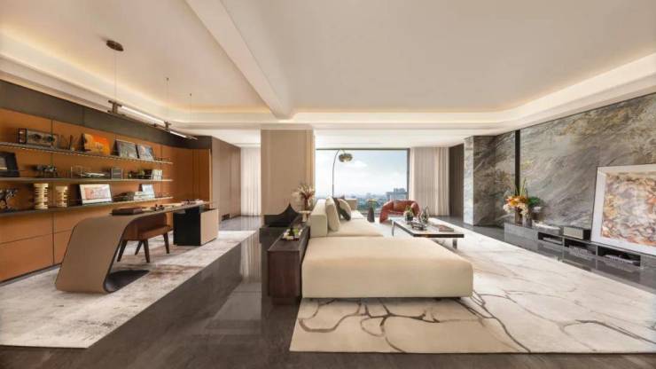 •家族式奢阔空间尺度体系:约3.1-3.5米层高,高通透性、高舒适度,以及更高级的空间气质