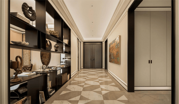 奢雅的气质,不止浮于表面,而是刻写在空间场景的生动细节之中。2米宽的超尺度艺术廊道,入户右侧半通透的空间格局,延伸了视觉空间。公区内特别设置了一个灵活多变的“X 空间”,可以根据不同业主的兴趣喜好,赋予它不同的属性,做到真正的“私人定制”。