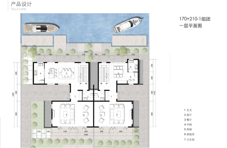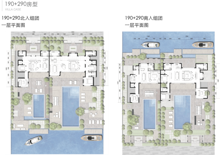 北入户的190+290房型,一层朝南直面庭院和泳池,如果配上整扇的落地玻璃移门......