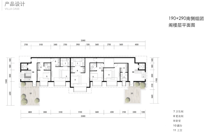 二层都是套房设计+露台+客厅挑空,190的二层是双套房、290的二层是三套房。