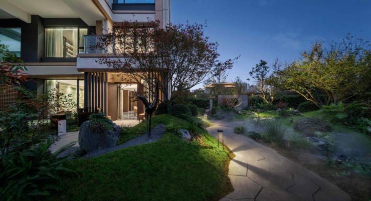 把第四代建筑理念融入叠拼,实现降板,把花园融入建筑,把森林搬进城市,首创空中花园独栋叠墅;