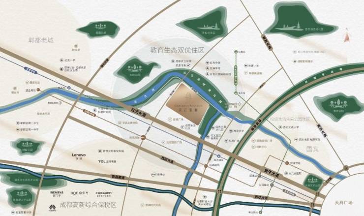 交通:蜀源大道、红光大道、西芯大道三条主干道快速通达;地铁6号线尚锦路站1.6km,2号线(规划中)500米