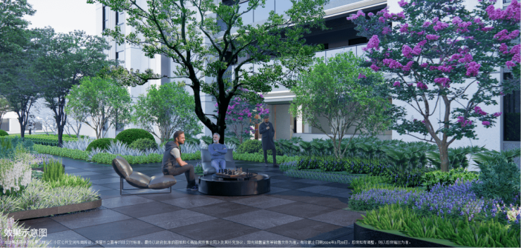 4、下沉式庭院,通过乌桕树、溪流构建一处安静的栖息之境,业主可在这里尽情放空。