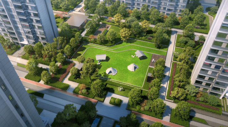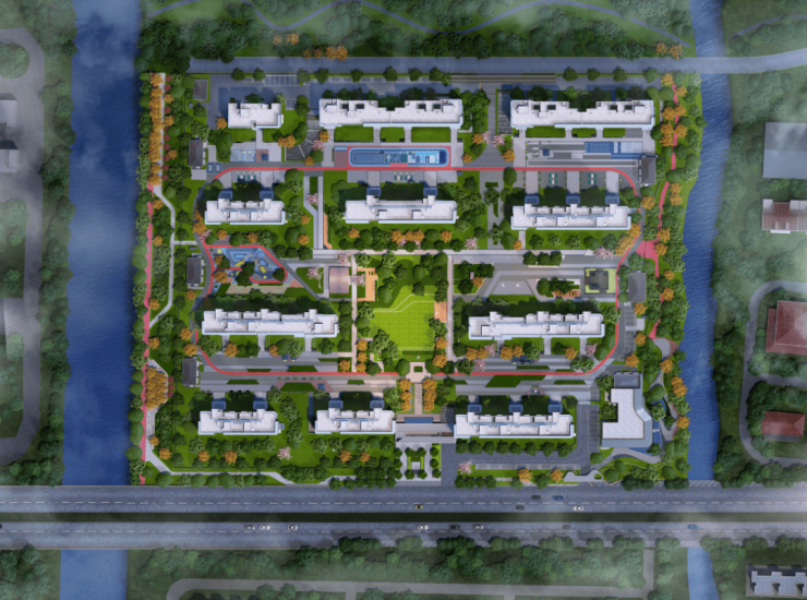 项目以精工打造人本化、艺术化、智能化、情境化的品质人居社区,通过对东方礼序文化与现代人居美学的空间布局,打造了虹悦“2轴1心,1环5区”的社区布局,让建筑的几何线条与精致细节,能够与绿境园林相互融汇,为全民健身、亲子陪伴、全龄社交铺陈了一隅奢适的舒心港湾。