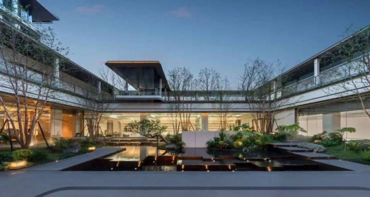 隐匿于都市繁华之中,下沉庭院被葱郁自然与静谧院落环抱,与绿意盎然的植物交织成一幅生机勃勃、变幻流动的自然画卷,带来层次丰富、美不胜收的视觉享受。