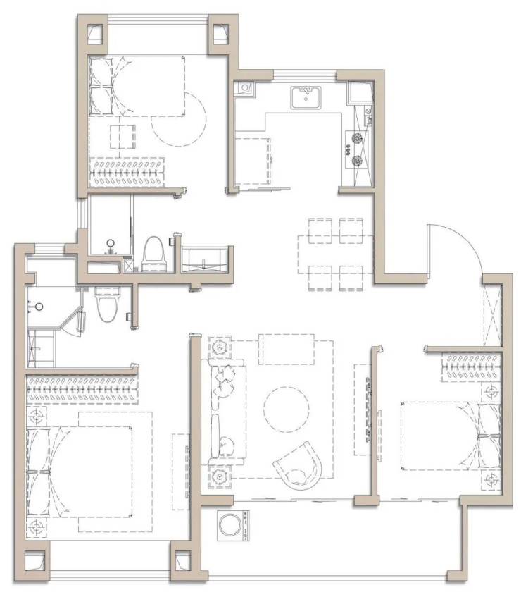 非常标准的飞机户型,室内无过道,几乎没有空间浪费。