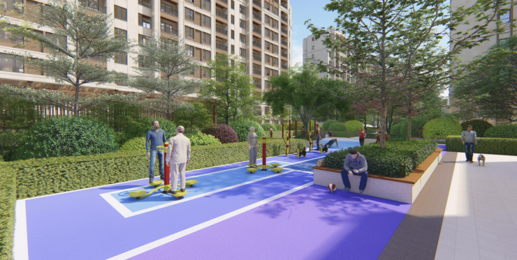 景观:十字礼仪对称,全龄化活动区