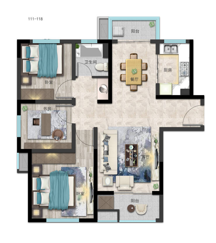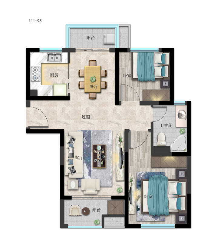 4.赠送面积多,两朝南阳台赠送(阳台只计入一半面积)