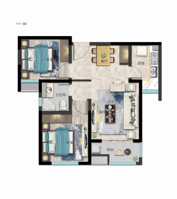 1.户型方正,无浪费,南北双阳台,超80%的得房率。