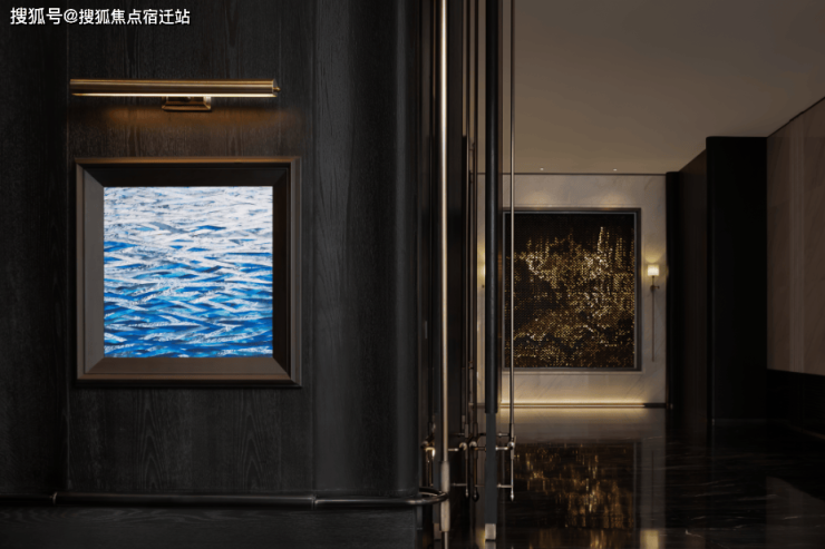 入户是约13米挑高空间,以此为序引入钱塘江波浪与拥江水韵的灵感,大厅采用东方白及玉石墙面背景、太古青金石材通铺地面,搭配超高落地玻璃,起笔尊贵感。
