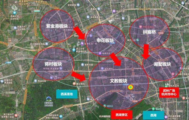 杭州第一文教区,紧邻杭州医学院、黄姑山路小学。 浙江大学西溪校区、钱塘外国语学校、学军中学西溪校区均在500米范围内。庞大师生消费需求。