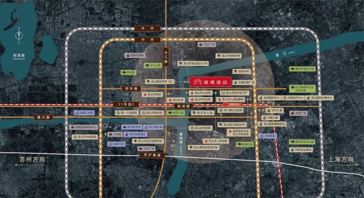 而璀璨璟园所占据的,正是昆山最繁华的地段--主城核心区,坐拥娄江、前进路、同丰路三条城市主动脉。
