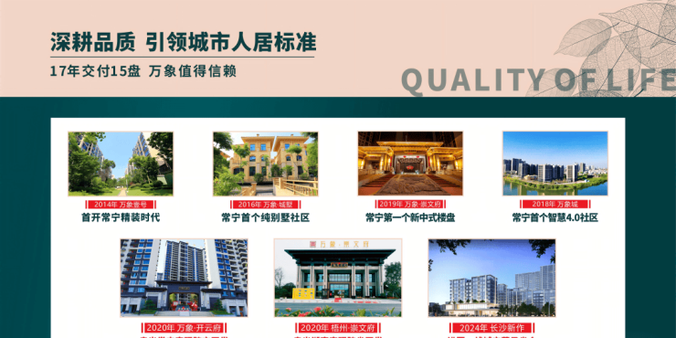 累计开发近200万㎡,服务业主超5万人。多年来万象地产以高标准履约交付、全流程贴心服务,赢得业主广泛赞誉。