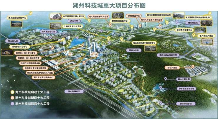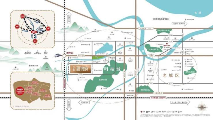 和锦府择址科技城核芯,作为湖州转型升级的重要功能片区,科技城以 “一核两翼、二轴九园”的布局,积极打造科创、人才、成果转化、产城融合的聚合高地,力争成为全球有影响的现代化生态科技城。