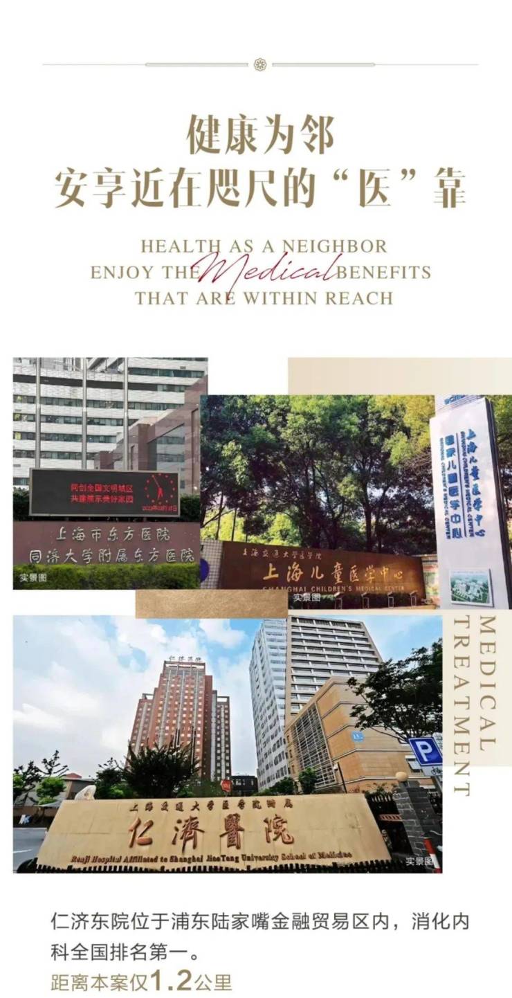 仁济东院位于浦东陆家嘴金融贸易区内,消化内科全国排名第一。距离本案仅1.2公里上海交通大学医学院附属上海儿童医学中心,是一所由上海市人民政府与世界健康基金会合作共建的集医、教、研于一体的三级甲等儿童专科医院。