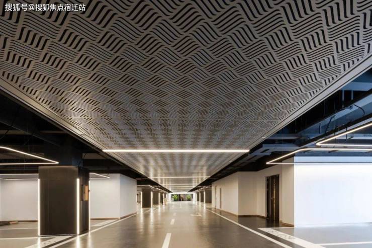 门厅一路之隔为地下车库入口,两侧的贝特白石材与门厅的立柱形成材质呼应。车库内部,顶面大体量雕刻装饰铝板、金色铝板立柱扑面而来,于繁复的意向中不断强化豪宅区的氛围感。