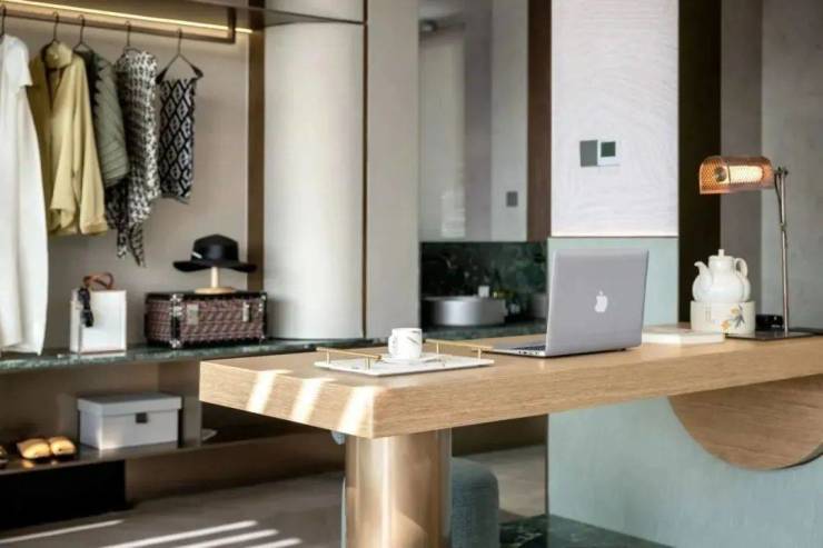 立面采用的是绿城众多经典作品早就被验证过的表现手法,轻盈玻璃+质感灰的高级组合,倒映了天光和云色,让建筑像是跃动在山间的音符。