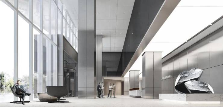 ·建筑材质·大面积银灰色铝板辅以深灰色背漆玻璃+黑岩板,简约不简单的商务气息突显业主的高雅品味。