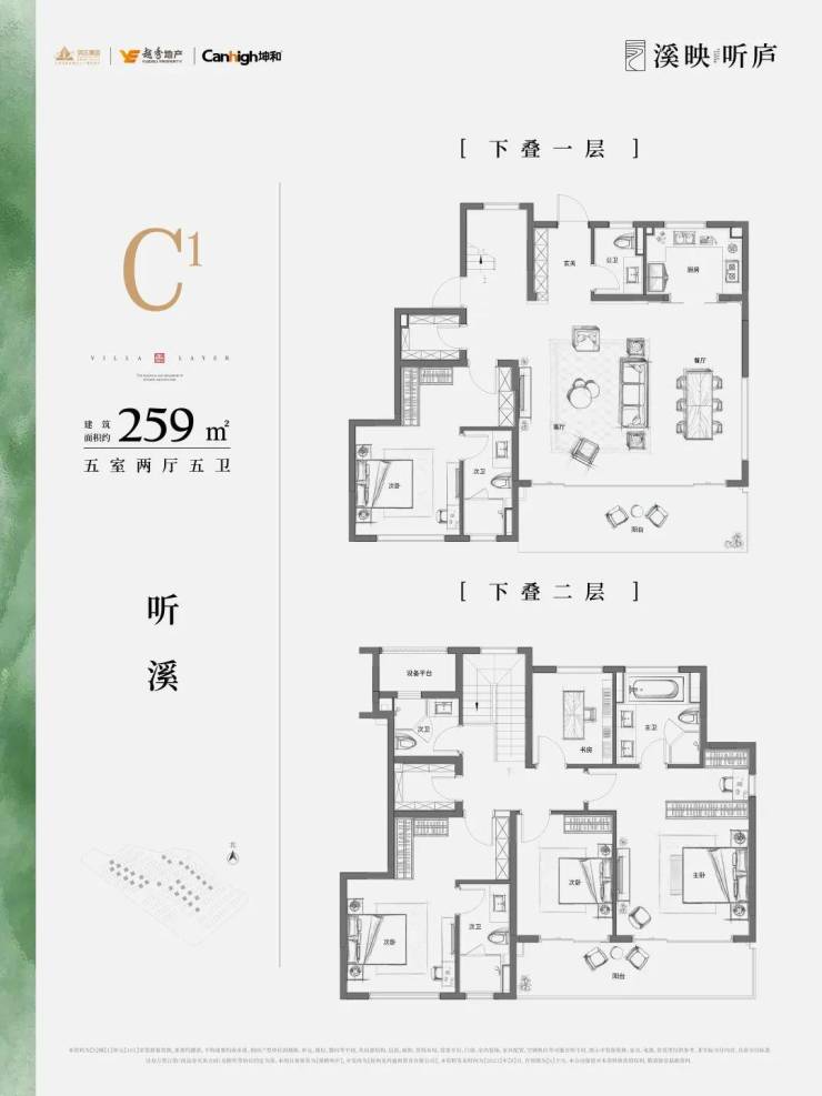 溪映听庐规划建面约200-260㎡的纯正精装改善上下叠,上叠带摘星与观山大露台,下叠带地下室坐享园林小景,同时,大面玻璃的立面设计,最大化的景观视野,万亩茶园化为窗外的胜景。置身室内,望群山绵延、茶田纵横,大地的屋脊与山川的脉络就是造物主最好的天际线,而溪映听庐的业主,就是大山的主人。