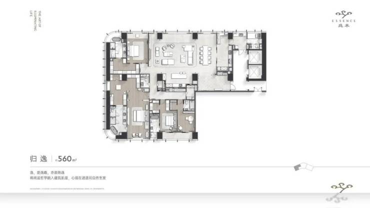 - 归逸560㎡:4.2米层高+270°环幕视野,主卧双衣帽间+行政级双主套,诠释闲适哲学。