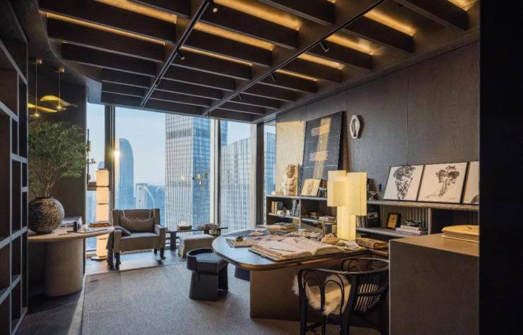精装标准:意大利大理石、德国厨卫系统、Savant智能家居全系配置,730㎡户型更配备独立藏品室与星空露台。