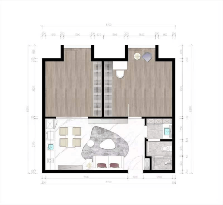 建面约101~102m²精装两房