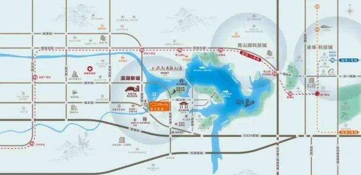 其次桃李映湖天赋稀贵,项目家门口直面约64平方公里青山湖国家森林公园,约500m便能抵达42公里环湖绿道起点。交通上,近邻地铁16号线(农林大学站),杭徽高速临安互通、科技大道改扩建以及城市南环线文一西路西延等众多交通路线相邻,不仅实现临安区域内便利通达,也无缝对接杭州城区,轻松实现半小时交通圈。