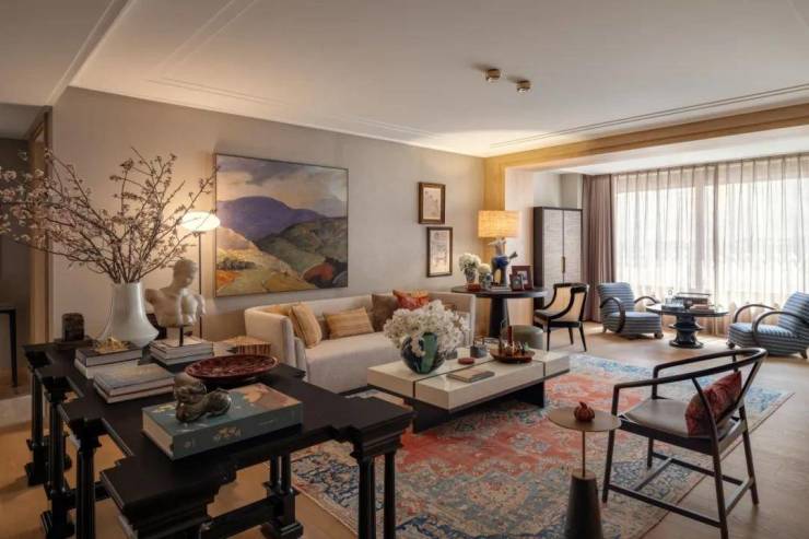 而在项目已公开的约320㎡公寓美学样板间内,基于独特的观念融合性,赋予丰富的视觉表达、多样性的收藏感及氛围感,通过极富艺术气息的构画,让户内空间成为一座生活美术馆,在层层递进间流露高阶的品位。
