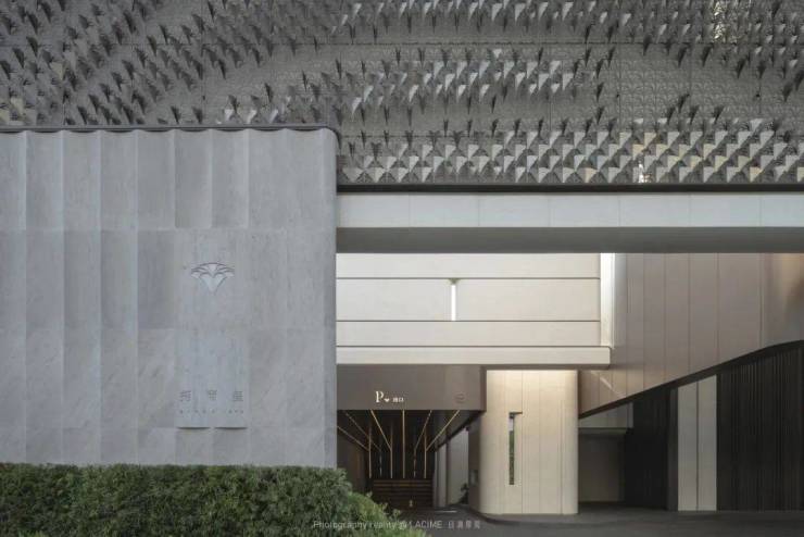 山茶花,被寄予超越时间的审美,成为招商玺家族化的符号,更作为艺术化的设计语言,赋予空间以情感。在城市的第一界面,上万朵不同角度的山茶花交织成锦,昼夜绽放,古典的符号在现代参数化手法的演绎下熠熠生辉,金属幕帘+石材的双层立面体系,绘制玺系独有的豪宅标签